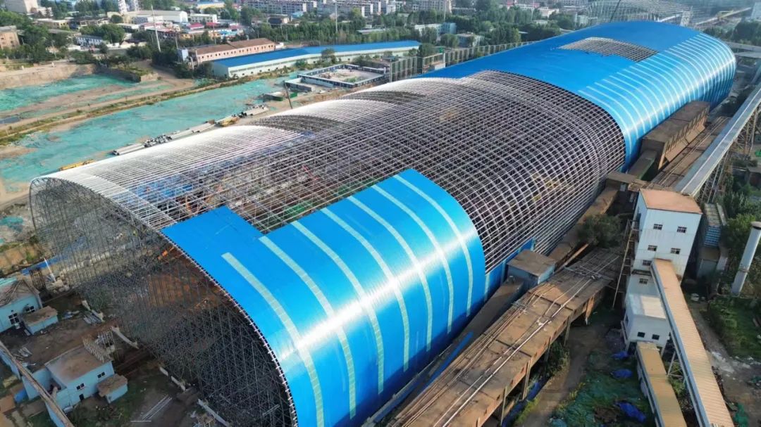 【精品工程】山東鋼鐵煉鐵廠老區(qū)原料場(chǎng)料棚網(wǎng)架竣工