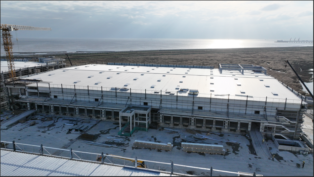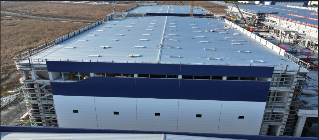濟(jì)寧一建鋼結(jié)構(gòu)工程有限公司承建的金屬屋面及維護(hù)工程,涉及1#-4#物流倉(cāng)庫(kù)、高架立體庫(kù)。倉(cāng)庫(kù)跨度80米,屋面標(biāo)高34.1米,為雙向找坡結(jié)構(gòu)。該項(xiàng)目建設(shè)規(guī)模大、工期緊、技術(shù)精度要求高、工況復(fù)雜,自項(xiàng)目開始施工。公司對(duì)現(xiàn)場(chǎng)管理嚴(yán)格要求,積極配合業(yè)主及總包的整體調(diào)配,施工嚴(yán)格執(zhí)行施工方案,遵循規(guī)范標(biāo)準(zhǔn),合理安排人、機(jī)、料等,戮力同心將馬士基臨港旗艦倉(cāng)項(xiàng)目打造成精 品工程、優(yōu) 質(zhì)工程。